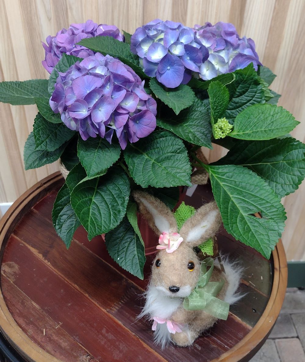 Hydrangée bleu avec cache-pot