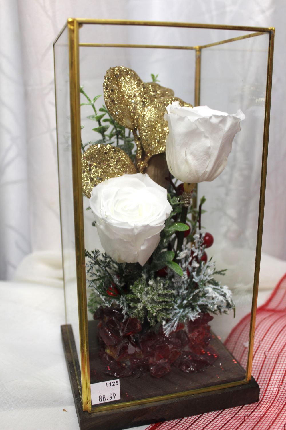 Rose éternelle grand vase avec fleur blanche ou rouge